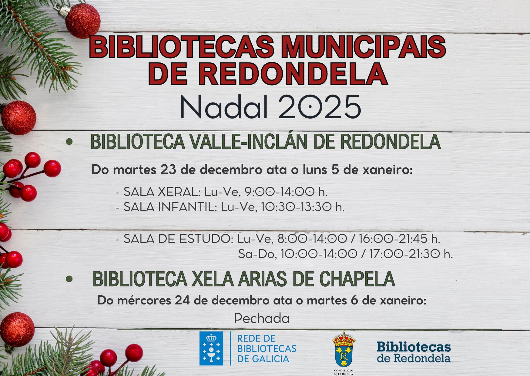 Lembrade que, despois destes días, as bibliotecas muncipais reducirán o seu horario durante as datas de Nadal.