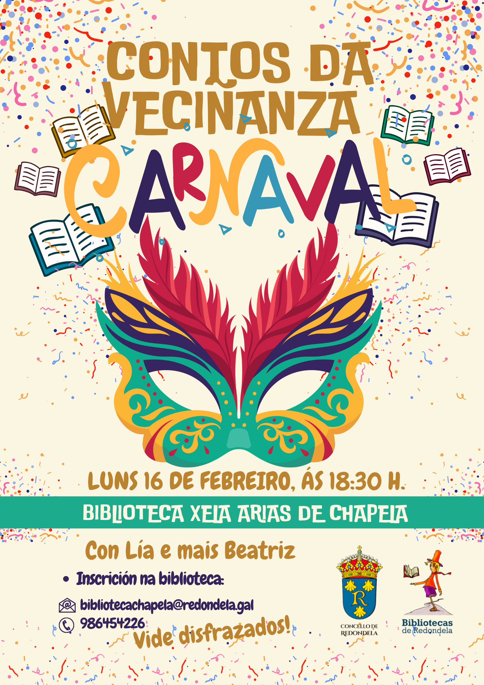 O luns de Entroido temos contacontos na Biblioteca Xela Arias, grazas á participación da nosa tan activa veciñanza. As nosas contacontos máis experimentadas, Lía e mais Beatriz, achegarannos historias a partir de personaxes moi ben caracterizados. Estades preparados para vir cos vosos disfraces? Para nenos/as a partir de 3 anos, e público familiar. Prazas limitadas. […]