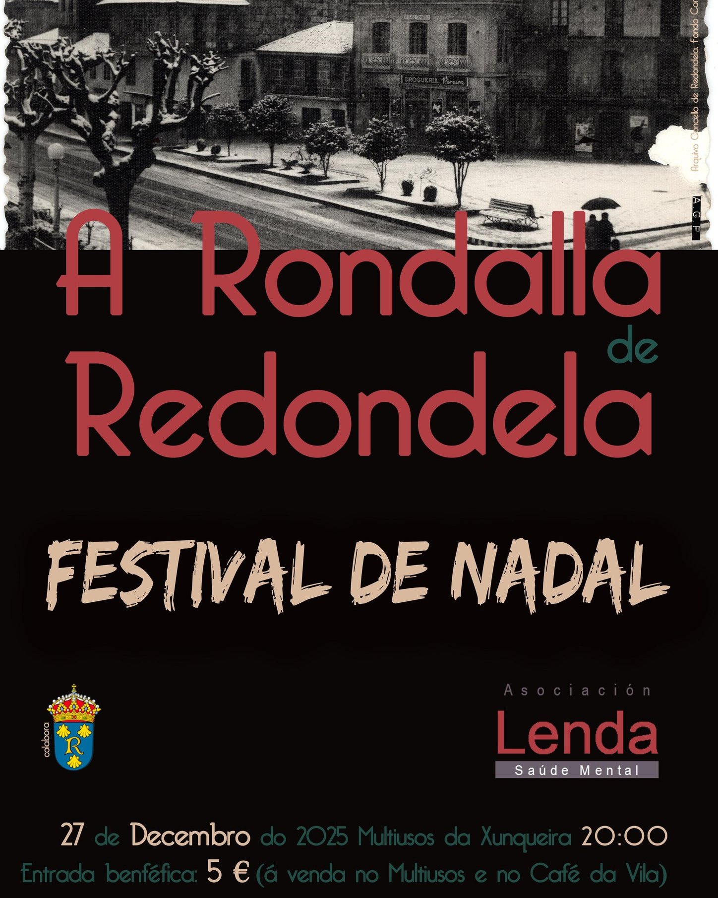 FESTIVAL DE NADAL coa RONDALLA DE REDONDELA Concerto solidario a favor de LENDA (5€ entrada) SÁBADO 27 de decembro. AUDITORIO da XUNQUEIRA NON FALTES