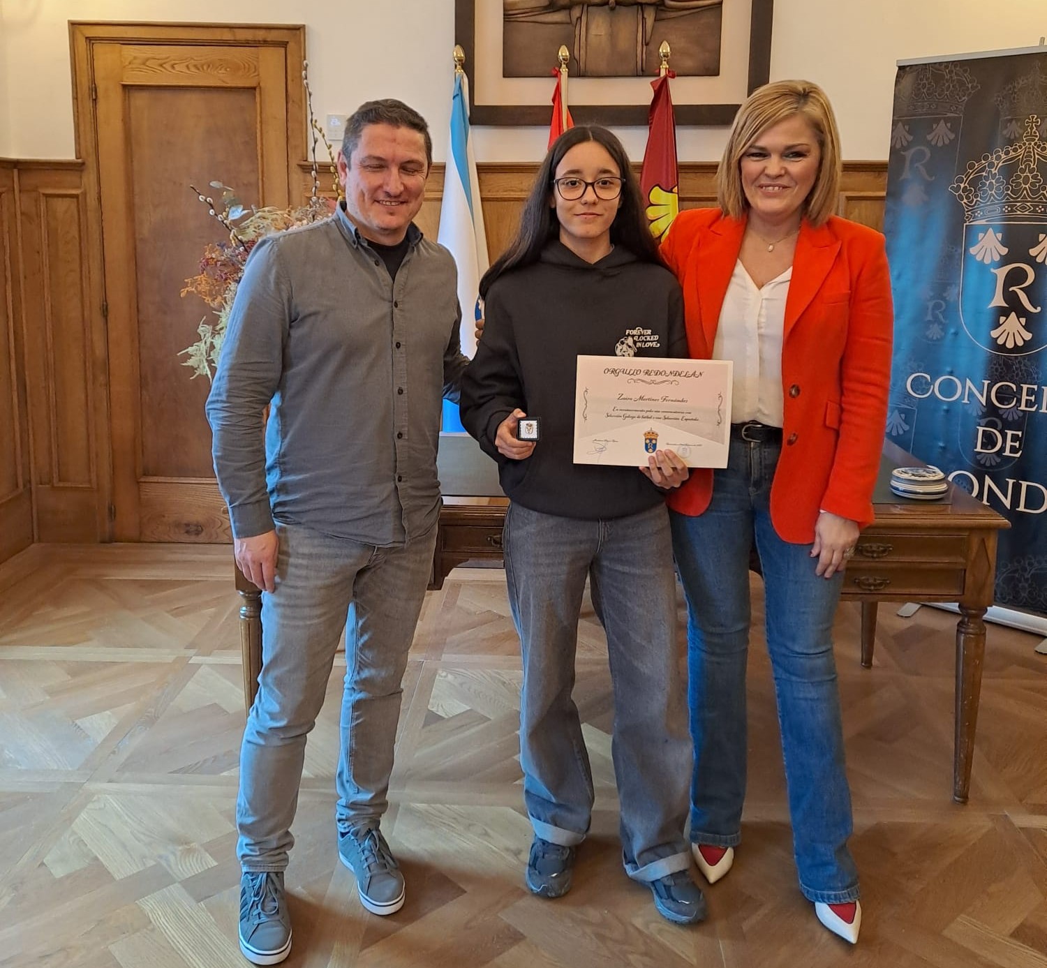 O Concello de Redondela acolleu a recepción á futbolista Zaira Martínez, convocada coa Selección Española de Fútbol. A xogadora, que actualmente milita no ED Val Miñor, comezou a xogar ao fútbol nos equipos base de Redondela. Esta temporada forma parte por cuarto ano da Selección Galega. Esta temporada o combinado galego está clasificado para xogar o Campionato de España Fase Ouro. A futbolista, de 14 anos, recibiu o diploma “Orgullo redondelán” e a insignia do Concello de mans da alcaldesa, Digna Rivas, e o concelleiro de Deportes, Iván Valles, como recoñecemento polo seu traballo e méritos deportivos. No acto a xogadora estivo arroupada pola súa familia, entre eles a súa irmá Naiara, tamén futbolista e que milita en As Celtas.