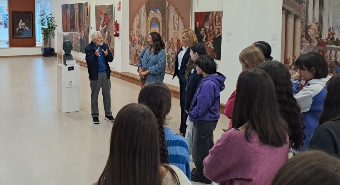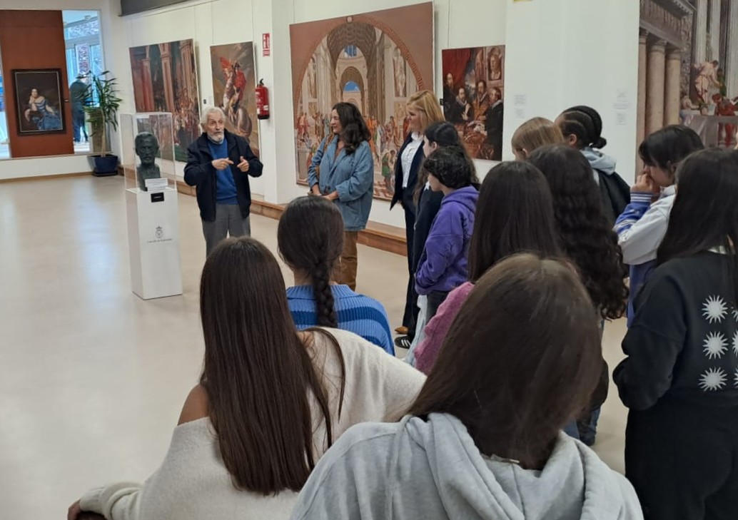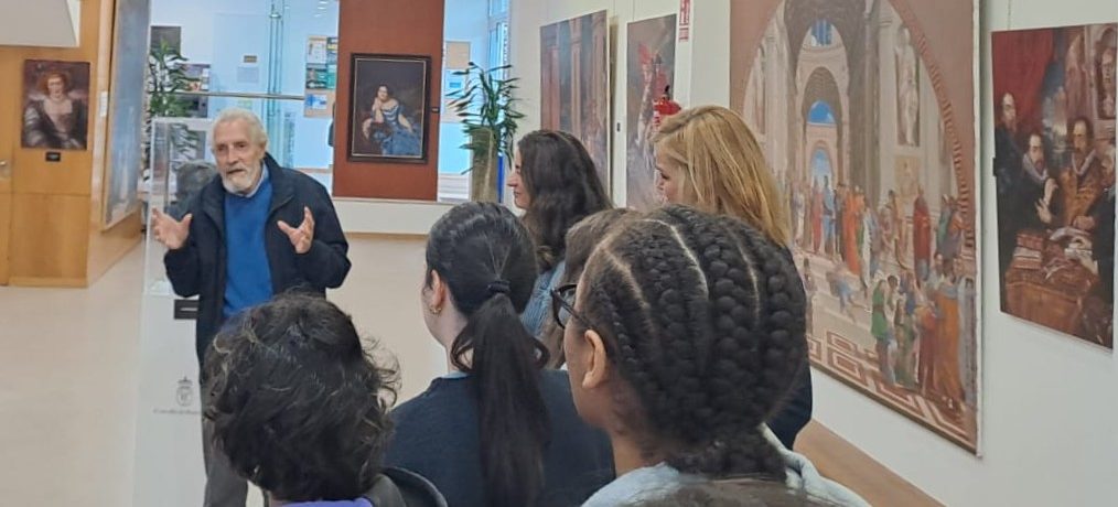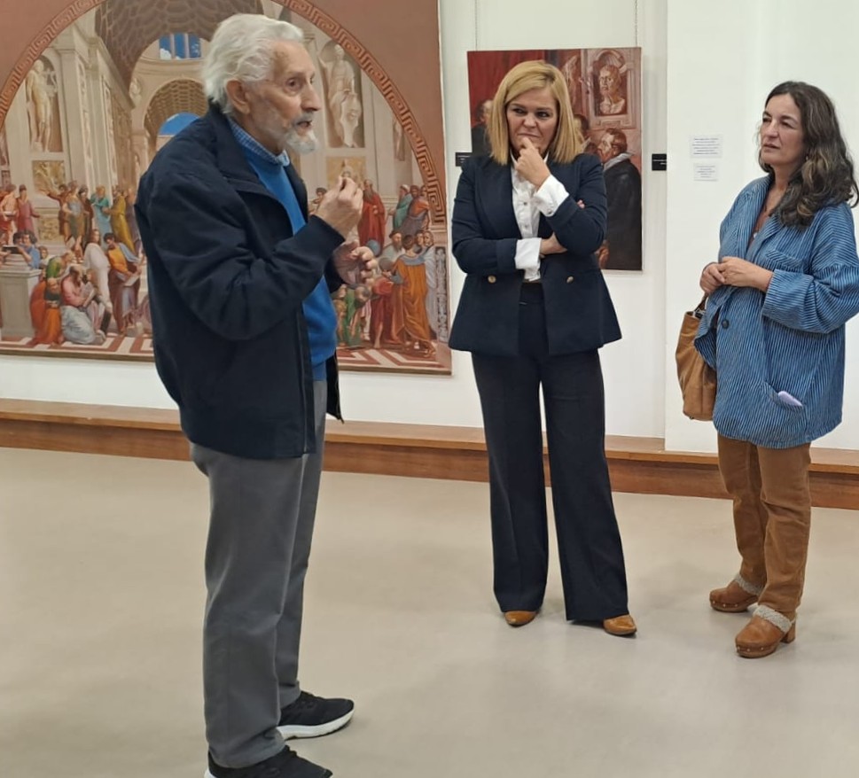 Alumnado dos colexios e institutos de Redondela está a visitar este mes a nova exposición do pintor e restaurador local Ángel Barros. A mostra, titulada “A luz da arte en tempos de xenocidio”, ofrece unha mirada crítica do presente marcado pola guerra e as súas consecuencias. O propio Barros, a piques de cumprir 90 anos, exerce de guía para alumnos e alumnas. Esta mañá foi a quenda do IES Mendiño. Na visita, á que tamén asistiu a alcaldesa Digna Rivas, o artista redondelán explicoulle á rapazada a historia da súa obra. Faloulle das técnicas que emprega e da súa experiencia como restaurador no museo do Louvre, entre outros traballos. O veterano pintor deulles tamén “consellos de vida”. Lembroulles que o que hoxe está a pasar en Gaza xa pasou antes noutros lugares, “sufrímolo aquí co golpe militar de 1936 e en tantos outros lugares onde os poderosos queren oprimir aos máis débiles”. Barros fíxolle tamén unha petición á mocidade, que non se “achiquen” ante as inxustizas e que defendan sempre “a dignidade e a igualdade de todas as persoas”.