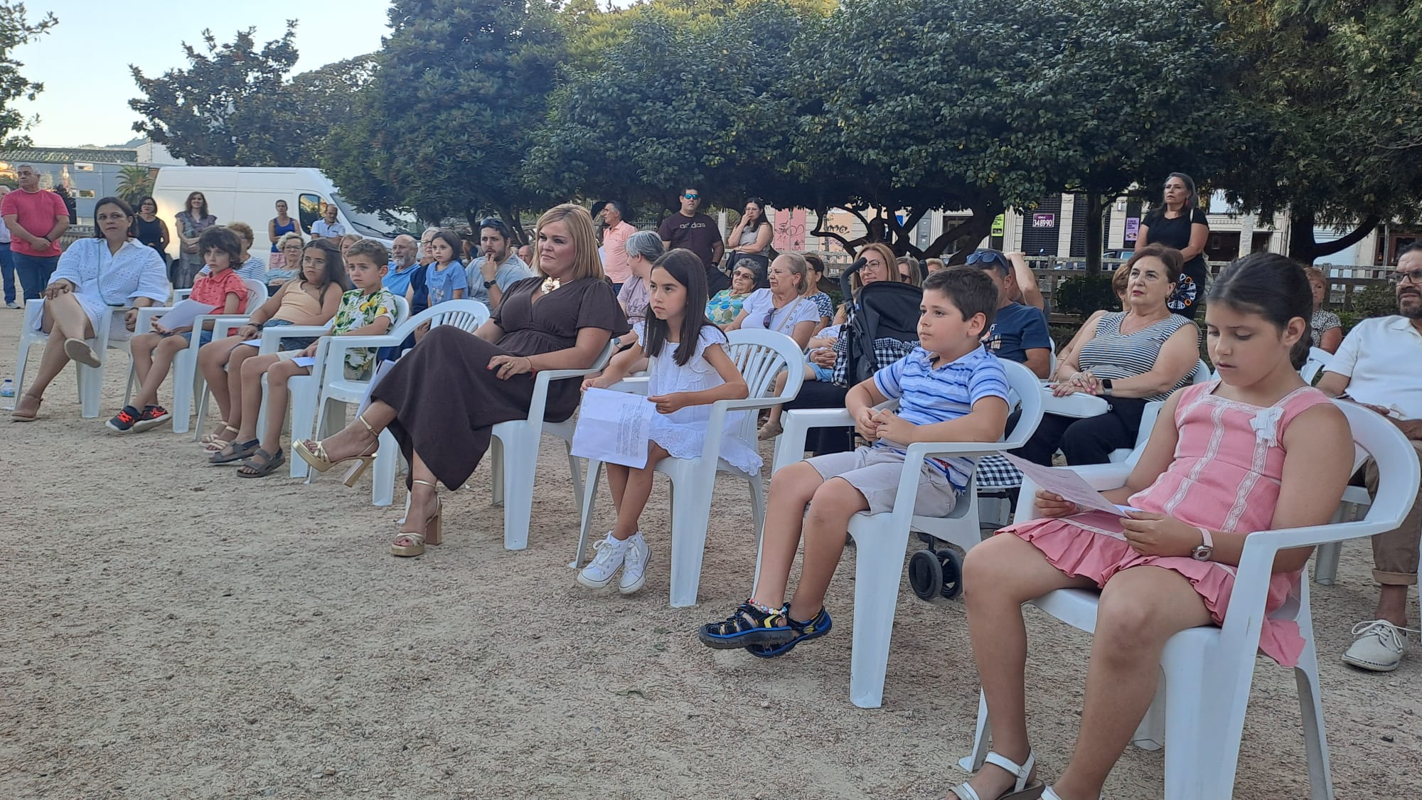 Manuel, Sara, Roi, Daniela, Manuel, Lucas e Noa, nenos e nenas que participan nos campamentos de conciliación, foron os encargados de falar desta data e da vida e obra de Castelao.