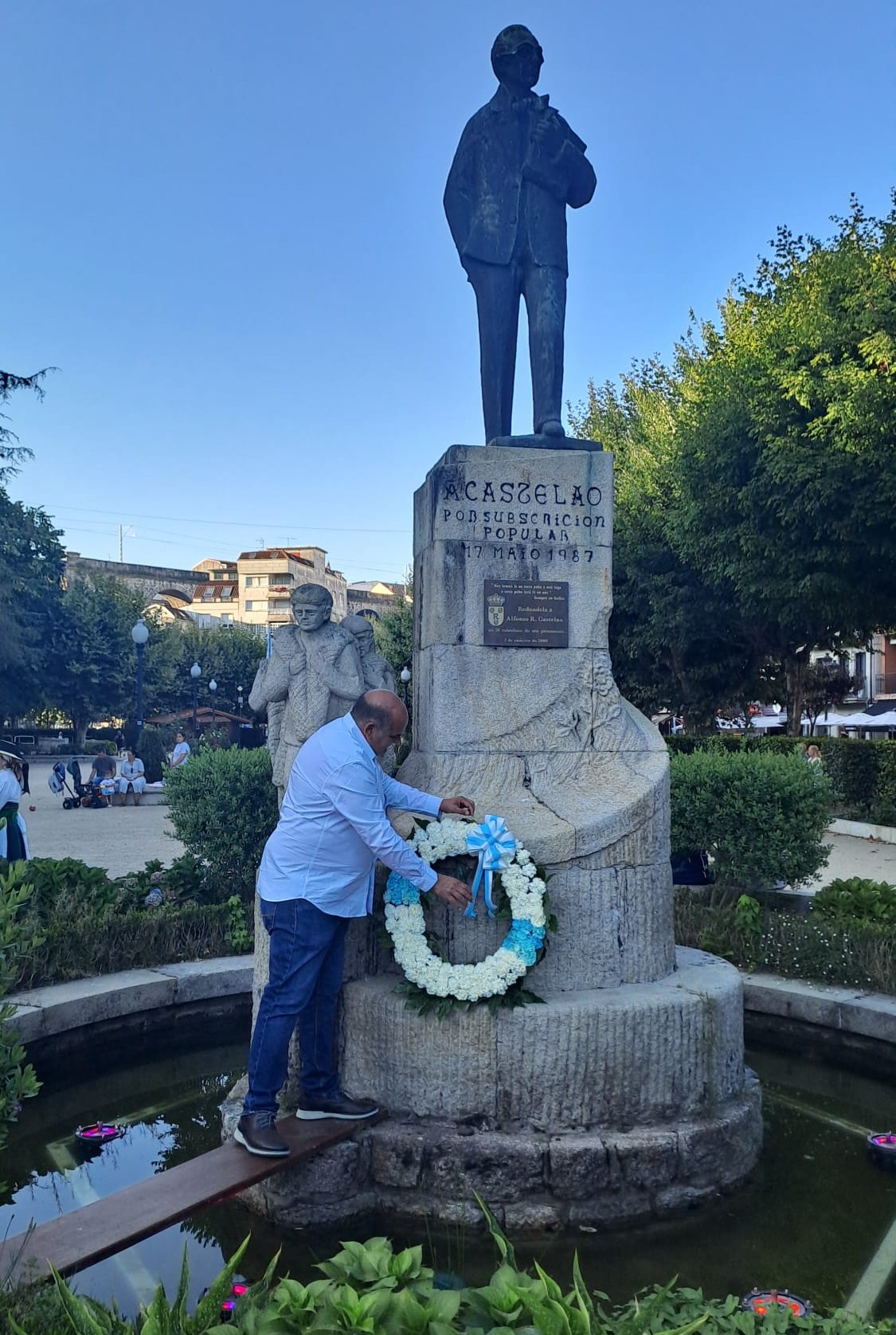 -Nenos e nenas dos campamentos de conciliación foron os encargados de poñer de manifesto a importancia desta data e da figura de Castelao. No acto participaron as pandeireteiras Ledicia de Trasmañó e ao son da gaita interpretouse a Marcha do Antigo Reino de Galicia e o Himno Galego.