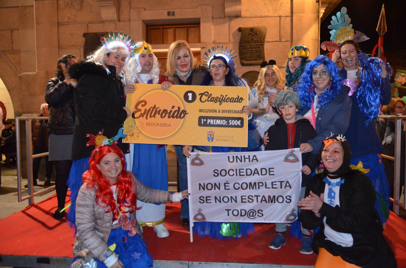 A agrupación redondelá “Trazos” foi este ano a gañadora do 1º premio do Desfile de Comparsas do Concello de Redondela, celebrado onte. «Trazos» fíxose co premio dotado con 900 euros. En segunda posición, cun premio de 600 euros, quedou “A realeza das luces” de Tomiño, e o 3º posto foi para comparsa “Os festeiros en festas” de Bembrive, cun premio dotado con 300 euros. No certame, celebrado esta tarde, tamén se decidiu o premio “Mocidade” para a agrupación con máis participación infantil e xuvenil, que nesta ocasión foi para “Vaiben”, comparsa de Cepeda, cunha dotación de 500 euros, o premio á “Exaltación do Entroido” para a comparsa redondelá Tío Emilio, con 800 euros, e o Premio “Inclusión” para a comparsa da asociación Andaina, dotada con 500 euros.