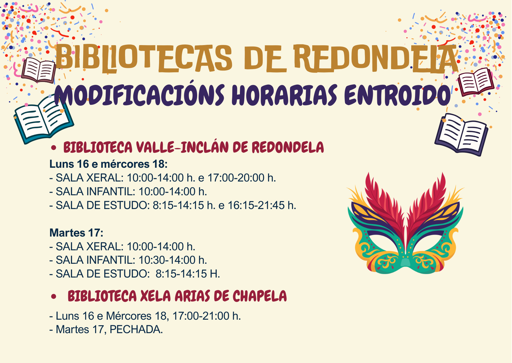 Achegamos modificacións horarias das bibliotecas muncipais para este Entroido.