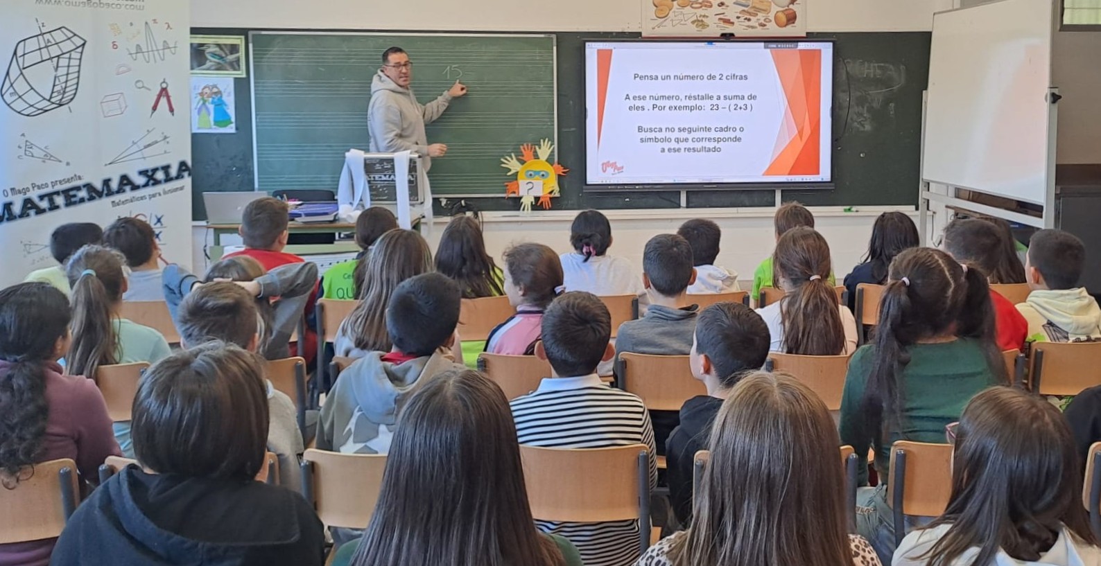– A alcaldesa, Digna Rivas, explica que é un xeito divertido de explicar as Matemáticas en galego cunha sesión de maxia “para romper os prexuízos que existen ao respecto do ensino das ciencias en galego”. Esta actividades, que hoxe comezaron nos CEIP de Reboreda e Quintela co Mago Paco, percorrerán este mes todos os colexios públicos de Primaria do municipio.