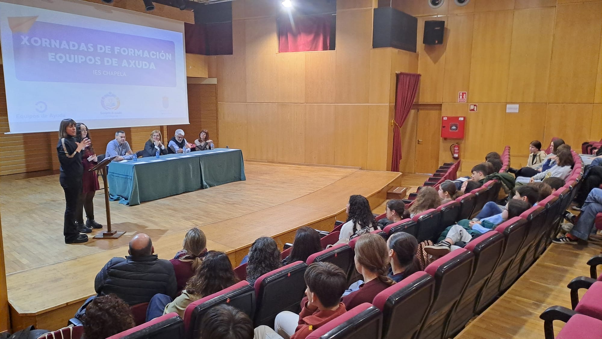 O Auditorio da Xunqueira acolleu durante dous días as xornadas formativas de convivencia do IES Chapela, unha iniciativa clave para a posta en marcha dos Equipos de Axuda do alumnado. Durante estas xornadas un grupo de 28 rapaces e rapazas de 1º, 2º e 3º da ESO formáronse para ser axentes activos na prevención do acoso e na mellora do clima escolar a través do apoio entre iguais.